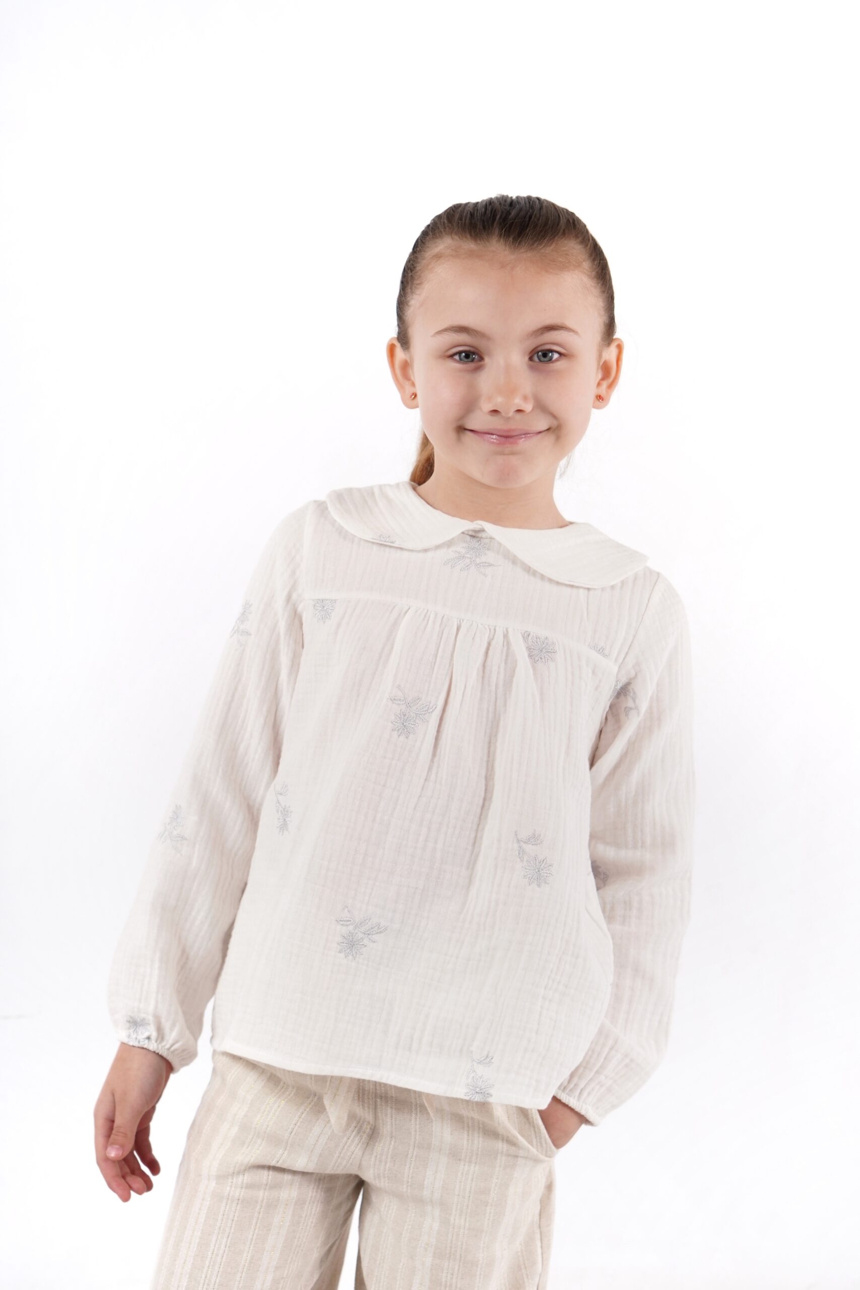 Blusa confeccionado en Baby cotton, un tejido muy suave, ligero y fresco.